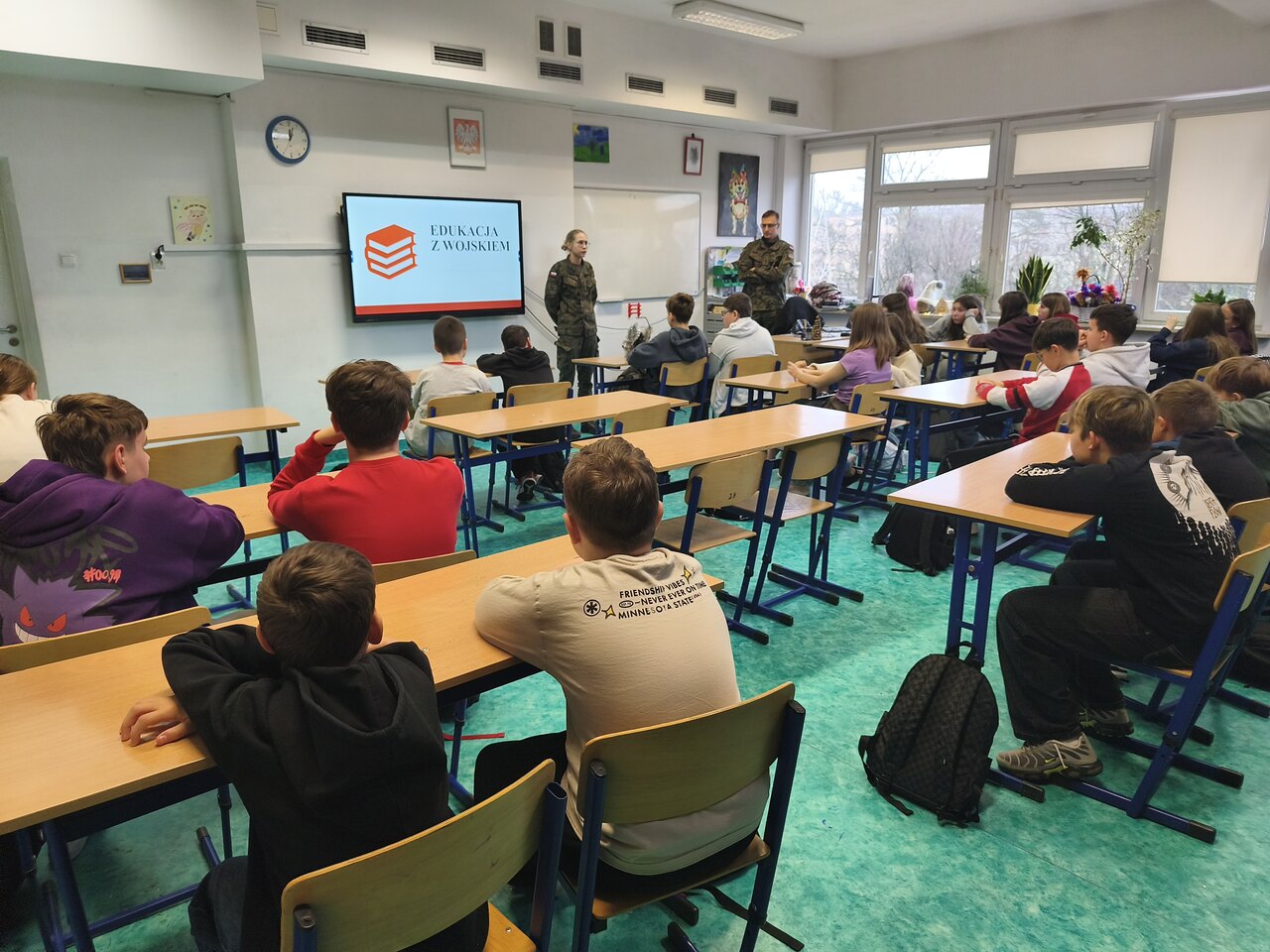 Edukacja z wojskiem w klasie 6b.